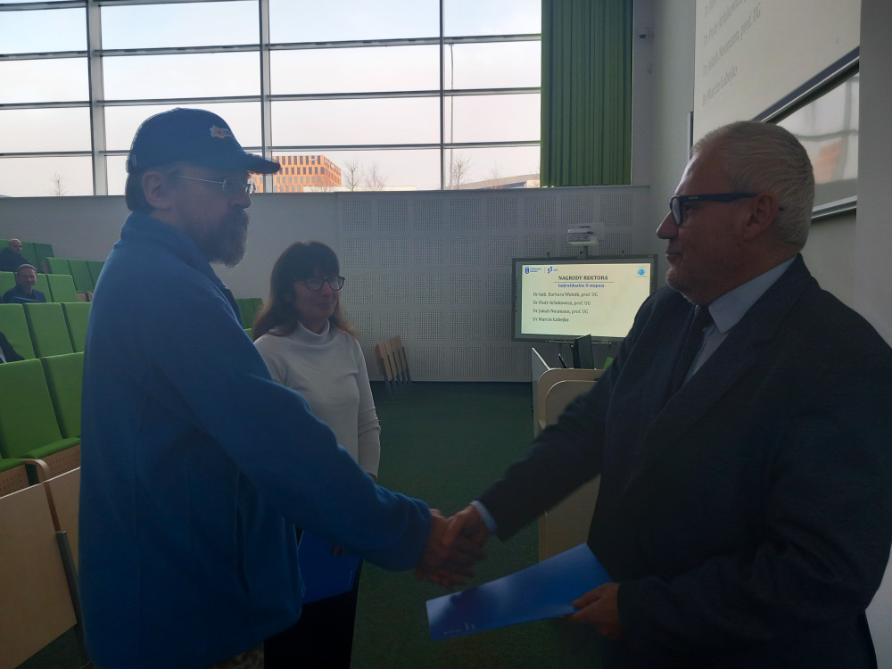 Gości powitał Dziekan WMFiI, dr hab. Marcin Marciniak, prof. UG, który wręczał nagrody pracownikom. Spotkanie poprowadził Prodziekan ds. Nauki i Umiędzynarodowienia, dr hab. Błażej Szepietowski, prof. UG.